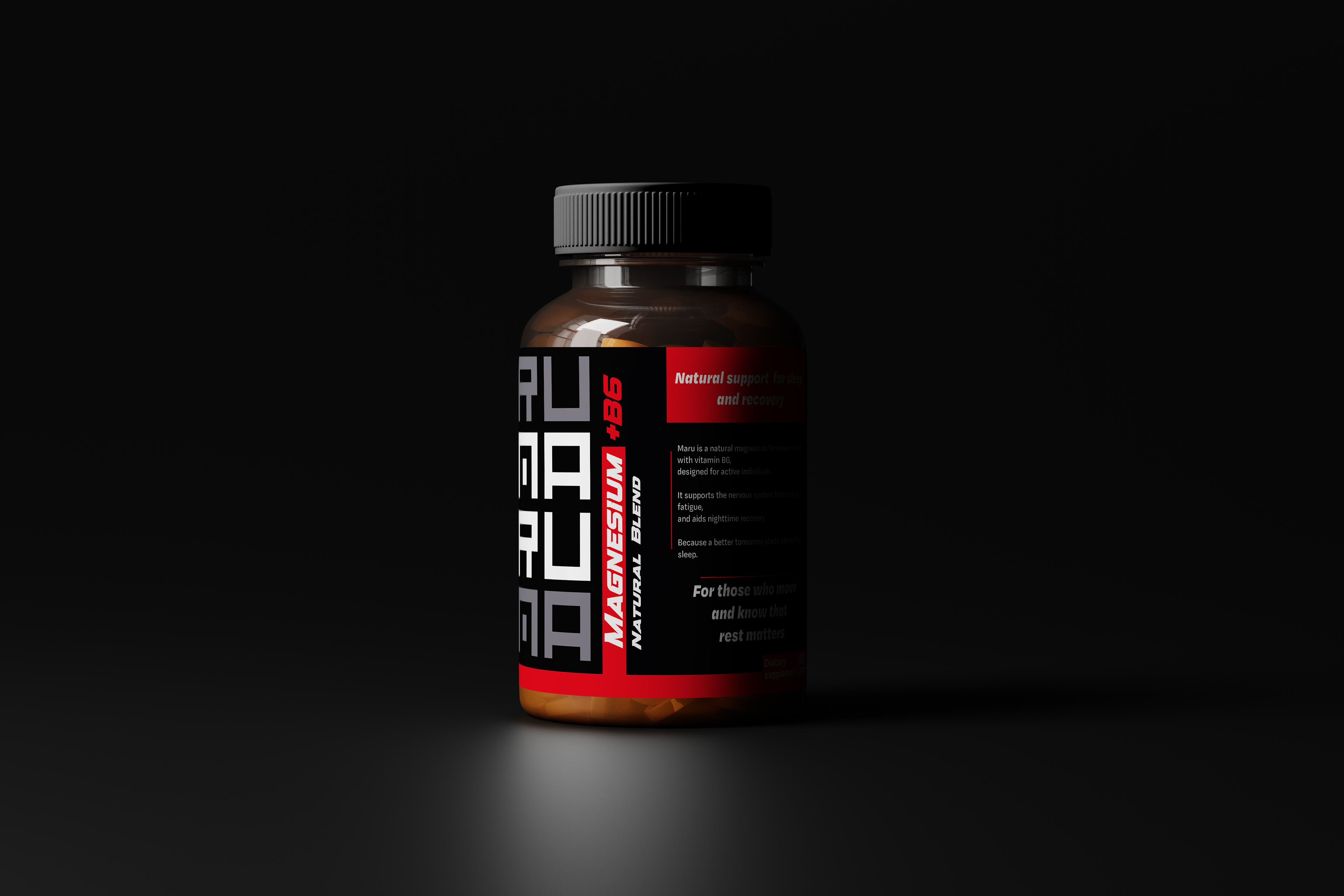 I designed a clean and lifestyle-driven label for MARU — a natural magnesium and vitamin B6 supplement created for active individuals who value quality rest and recovery as much as movement.